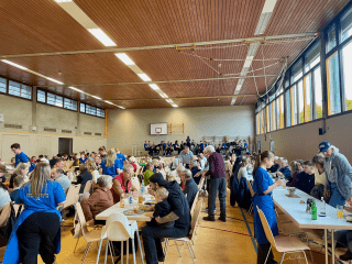 Wie schon seit vielen Jahren zuvor durften wir auch am 06.12.2025 die Weihnachtsfeier der Behinderten- und Versehrtensportgemeinschaft Ellwangen in der St.-Georg-Halle Schrezheim bewirten. Bei leckeren Essen und guten Getränken verbrachten alle Anwesenden eine schöne und gemütliche Zeit. Für musikalische Unterhaltung sorgten „Lorenz & Peter“, die mit ihrem Gesang und schwungvollen Liedern zum Mitsingen und Tanzen einluden. Der Abend war geprägt von netten Gesprächen, einem schönen Beisammensein, einer besinnlichen Weihnachtsgeschichte, dem Besuch des Nikolaus sowie Ehrungen langjähriger Mitglieder. Für uns war es – wie immer – eine Freude, Teil dieser besonderen Veranstaltung zu sein. Wir bedanken uns herzlich beim Vorsitzenden Heinz Rieker sowie beim gesamten Verein für die hervorragende und freundschaftliche Zusammenarbeit.