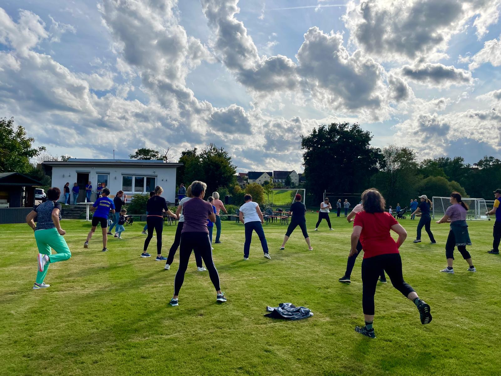 Das Angebot war vielfältig. Vom Sportprogramm für Kinder, Torwandschießen, Fitnessgymnastik, Jogging, Walking und Fahrradfahren war für jeden, egal ob jung oder alt, etwas Passendes dabei. Ein eindrucksvoller Beleg dafür, dass so manchem der Vereinssport, bedingt durch die Sommerferien, gefehlt hat. Umso größer war bei allen die Motivation sich zu bewegen und mit viel Spaß ging die Stunde schnell vorbei.